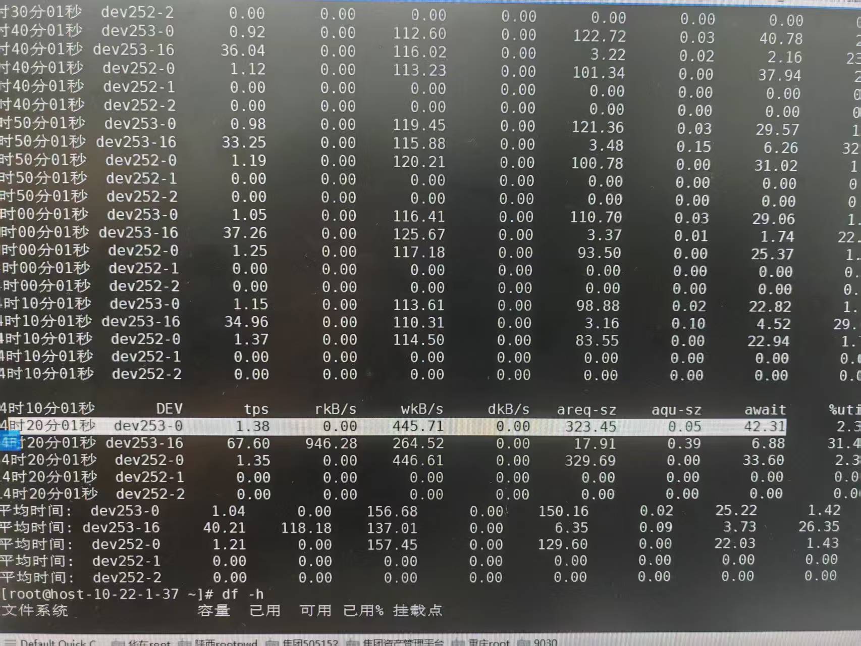 04:50:01 AM dev253-0 0.54 0.01 7.31 13.45 0.00 1.12 0.24 0.01